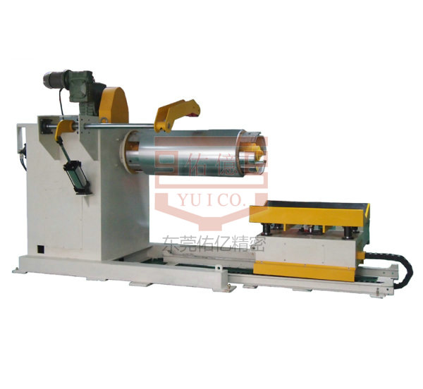 佑億精密沖床周邊自動(dòng)化設(shè)備廠家建議開(kāi)卷機(jī)當(dāng)開(kāi)卷料卷過(guò)重(過(guò)2T)時(shí),則需將手搖擴(kuò)張方式更改為液壓擴(kuò)張方式,同時(shí)將漲縮結(jié)構(gòu)由螺桿調(diào)節(jié)式更改為楔形滑塊式,以節(jié)省勞動(dòng)強(qiáng)度,確保料卷完成張緊。